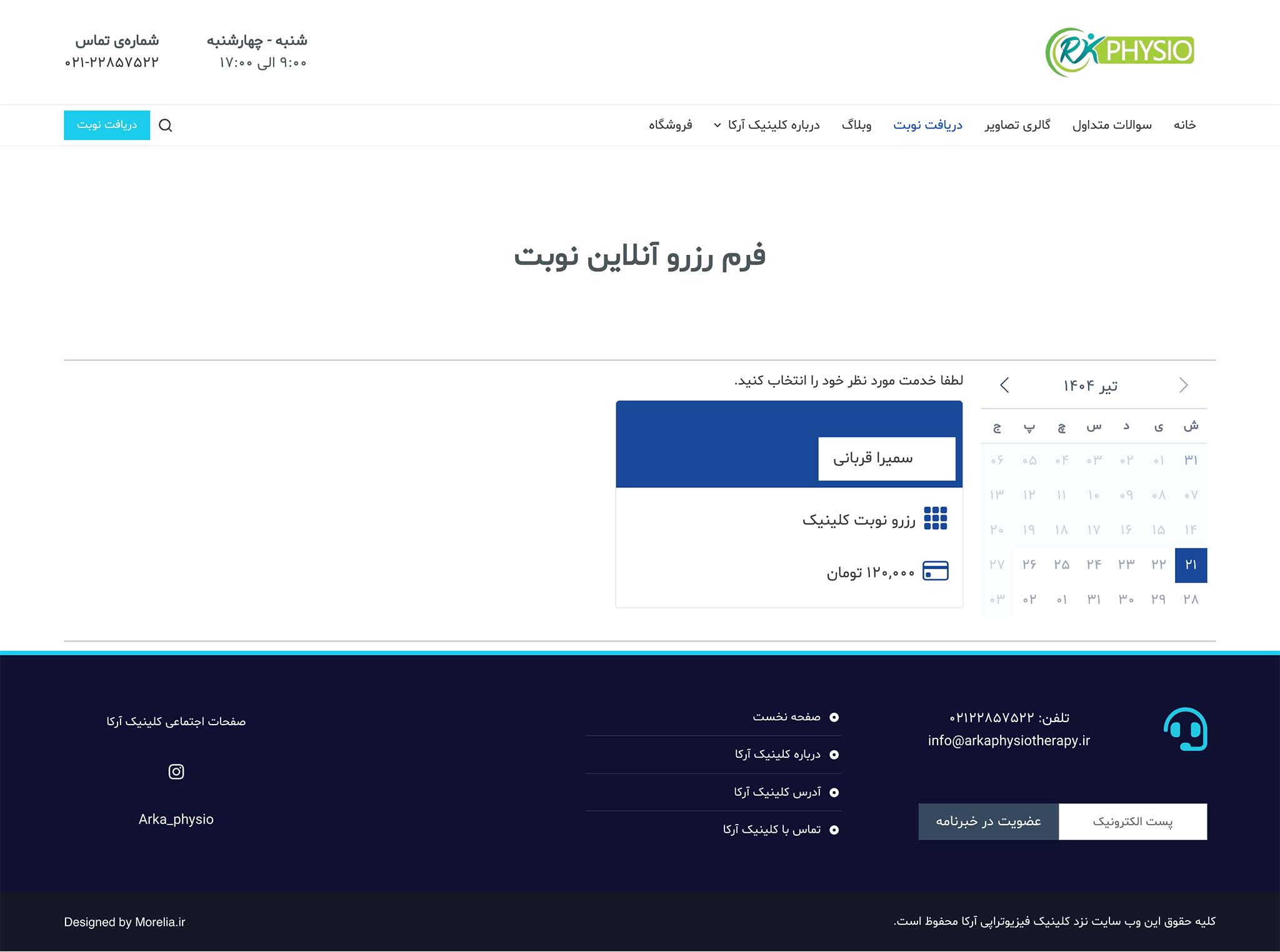 کلینیک فیزیوتراپی آرکا واقع در تهران، یکی از پروژههای موفق ما در حوزه طراحی سایت خدمات درمانی و سلامت بود. تمرکز اصلی این پروژه، ایجاد یک بستر ساده، کاربردی و در عین حال حرفهای برای معرفی خدمات کلینیک و اخذ نوبت آنلاین بود.
